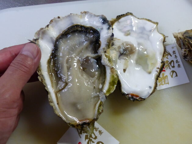 今回ゲットした殻カキは、殻にブランドタグが付いているから、売り場でとっても目立っていました。