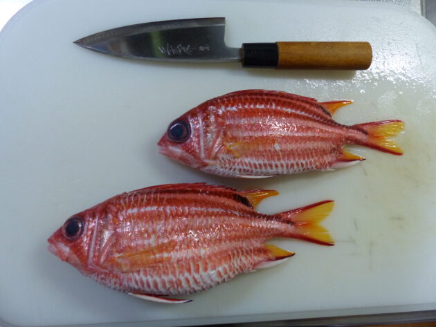 本日のお品はコレ!  トビハタです。   売り場を歩いていたら、魚屋さんから「めったにお目にかかれない魚が入荷したよ」って声をかけられたものだから・・・ かなり立派なお値段でしたが、珍らしい魚に目がない箱ちゃん […]