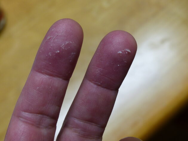 素手でさばいたら指がこんな状態になっちゃいましたので、軍手を使ったほうがいいかも。